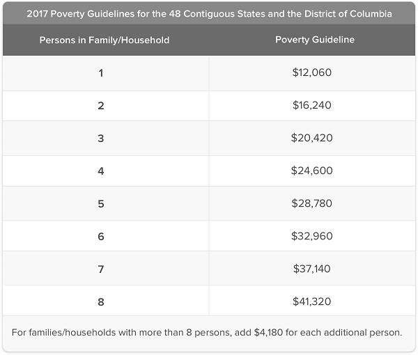 The chart above shows the FPL for 2017. The FPL changes from year to year.